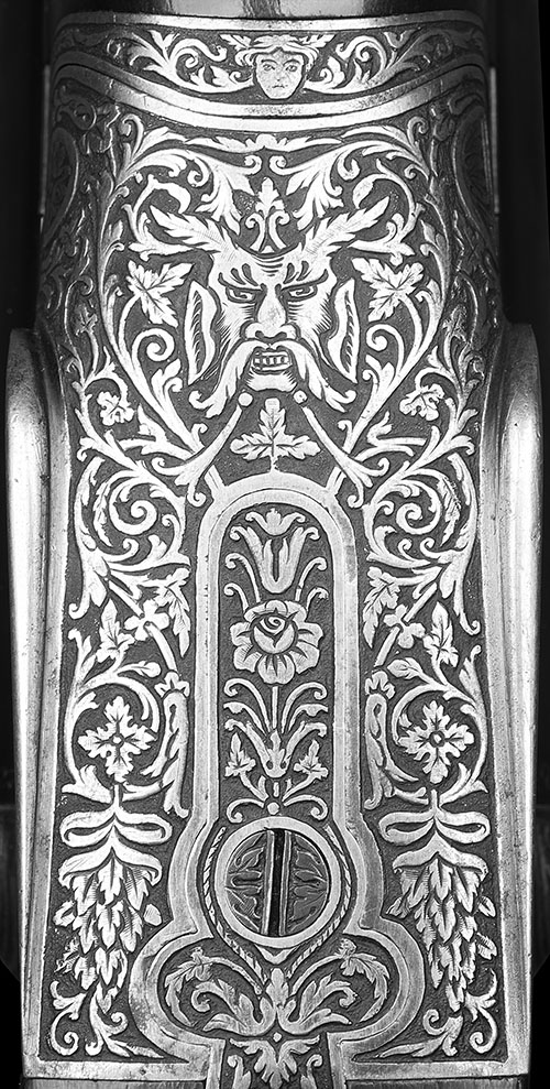 Literature: Gun No. 22182 is illustrated in Donald Dallas's book 'James Purdey & Sons Gun & Rifle Makers Two Hundred Years of Excellence' on page 155. A copy of the original ledger entry is reproduced on the facing page. The engraving is attributed to being the likely work of Harry Kell.