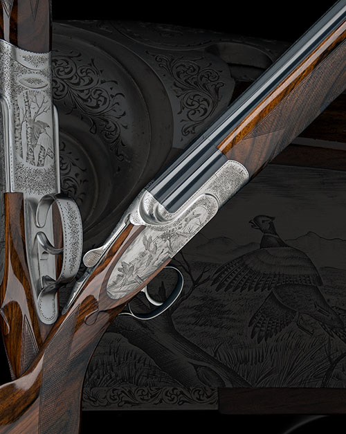 29in. nitro barrels with raised tapered solid matt top-rib, 2 3/4in. chambers, bored approx. imp. cyl. and 1/4 choke, hold-open toplever, automatic safety with integral triggerplate release, fine acanthus scroll engraving surrounding game scenes of pheasant and woodcock in flight, the triggerplate signed 'D. BONSI', bright finish overall, 15 1/4in. highly-figured semi-pistolgrip stock including 7/8in. rubber recoil pad, weight 7lb. 1oz., in its universal case