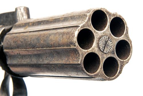 A 46-BORE PERCUSSION SIX-SHOT PEPPERBOX REVOLVER, no visible serial number,