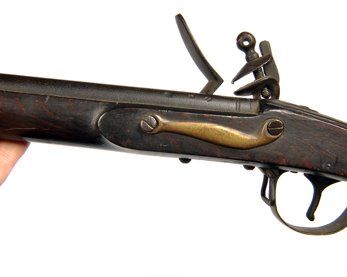 A 20-BORE FLINTLOCK SPORTING MUSKET FOR THE COLONIAL MARKET SIGNED TOWER, no visible serial number, circa 1830, with 39in. barrel (pitted externally), military style lock marked with a crown and 'TOWER', walnut three-quarter stock, brass furniture, iron ramrod and stirrup swivels