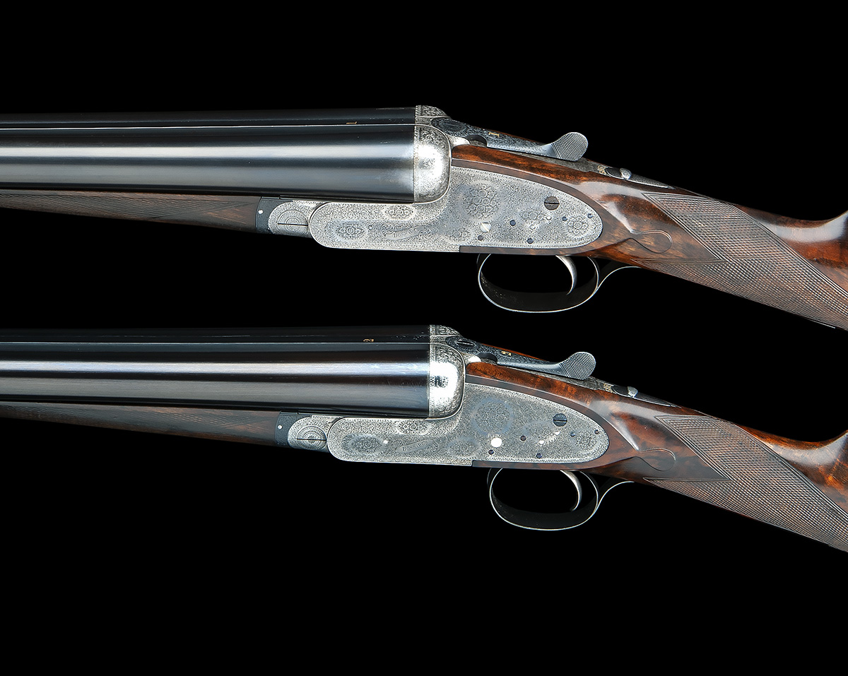 Provenance: The makers have kindly confirmed that the guns were ordered on 28th September 1920 for an E. Thornton. They are recorded as being a pair of hammerless ejector guns, one trigger, 12-bore, 29in. barrels with 15in. stocks