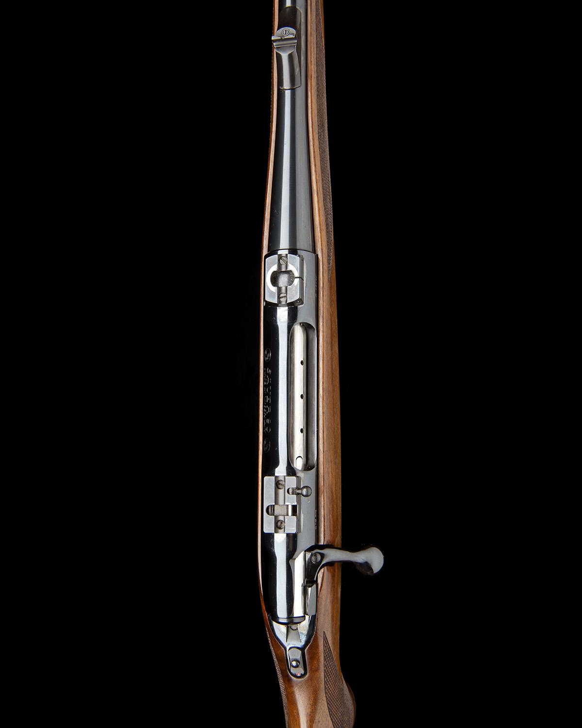 20 1/2in. nitro barrel with ramp-mounted open sights and ramp-mounted bead foresight, the receiver with quickly-detachable telescopic sight mount bases, tang safety, detachable box magazine (marked for .270, standard 4-round medium), set trigger, full-length pistolgrip stock with palm swell, cheekpiece, hogsback comb, sling swivels, 14 3/8in. pull including 1in. ventilated rubber recoil pad, weight 8lb. 1oz.
