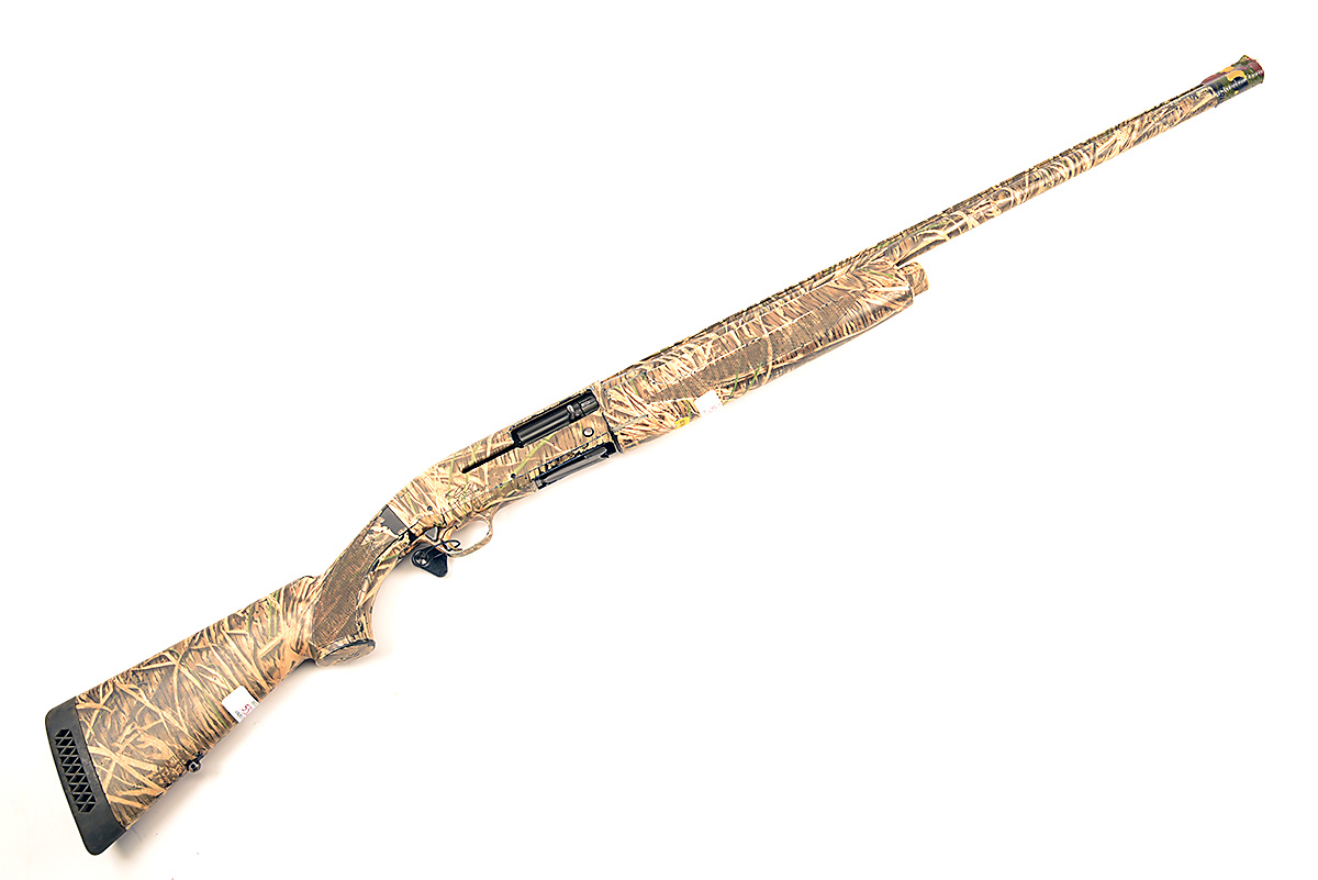 BROWNING 12-BORE (89MM) 'GOLD HUNTER' SEMI-AUTO SHOTGUN, serial no. 113MM0383, restricted magazine, 27in. nitro barrel with 6mm ventilated matt rib, 89mm chamber, multichoke (no spares), manual safety, magazine cut-off switch, gold-washed trigger, 14 1/2in. synthetic pistolgrip stock including ventilated rubber recoil pad, the whole in worn camouflage effect finish, weight 8lb.