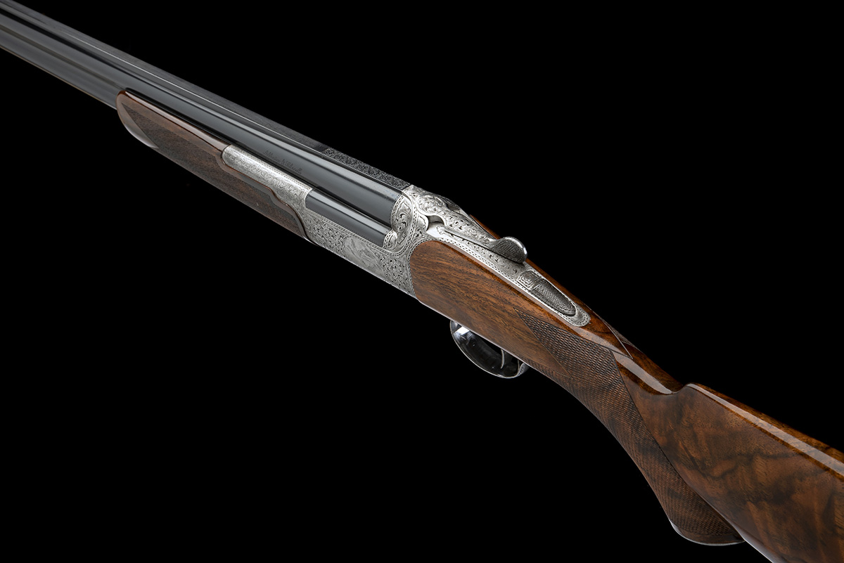 for 2009, 28in. nitro chopperlump barrels with 8mm solid raised matt top-rib, scroll-engraved at the breech end, side-ribs, 2 3/4in. chambers, bored approx. 1/2 and 3/4 choke, hold-open toplever, manual safety with gold-inlaid 'SAFE' detail, bold acanthus scroll engraving on a matted background surrounding finely engraved game scenes in Bulino style of pheasant, duck and partridge, the triggerplate signed 'D. Volpi Academia Il Bulino', the detachable trigger group engraved en suite, old silver finish, 14 5/8in. highly-figured pistolgrip stock with engraved steel pistolgrip-cap, the fore-end engraved en suite and gold-inlaid with the model designation, weight 7lb. 10oz., in its universal case, together with a fully illustrated description of the gun by the makers
