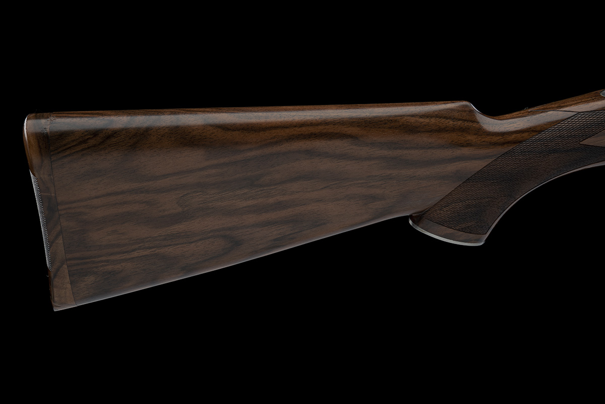 dated 2013, 30in. nitro barrels with 7mm solid matt top-rib, 3in. chambers, multichokes (with spares), hold-open toplever, manual safety with integral barrel selector switch, the action, decorative sideplates and furniture fully engraved with acanthus scrollwork and with occasional gold-highlighted floral designs, the underside with a scrolling banner engraved 'APEX', triggerplate signed 'Bottega C Giovanelli', satin finish, 14 1/2in. pistolgrip stock including 3/8in. wooden extension, weight 6lb. 11oz., in its makers universal case