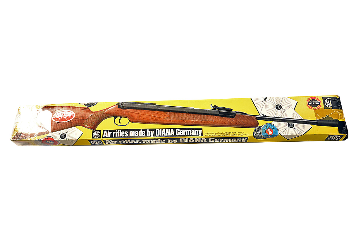 A BOXED .22 ORIGINAL 52 'FIREBIRD' SIDE-LEVER AIR-RIFLE, serial no. 960448, with 17 1/4in. sighted barrel, sliding breech, blued air-chamber with applied telescopic sight rail and chequered beech half-stock, appearing unused in its maker's card carton (taped repairs)