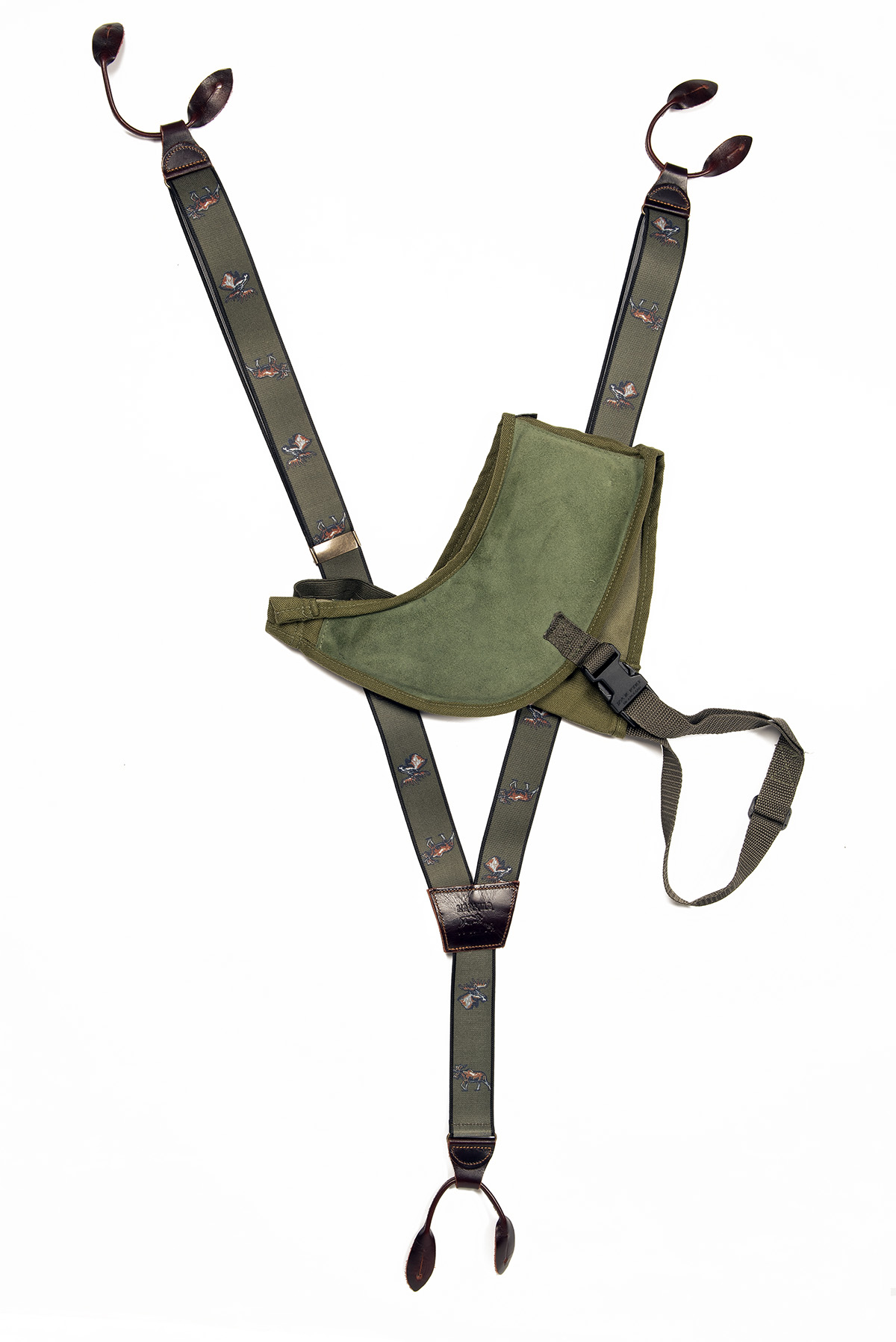 A QUANTITY OF OUTDOOR CLOTHING, Harkila of Scandinavia gore-tex green jacket size 50, trousers size 52 & braces, with a Jack Pyke shoulder pad (4)