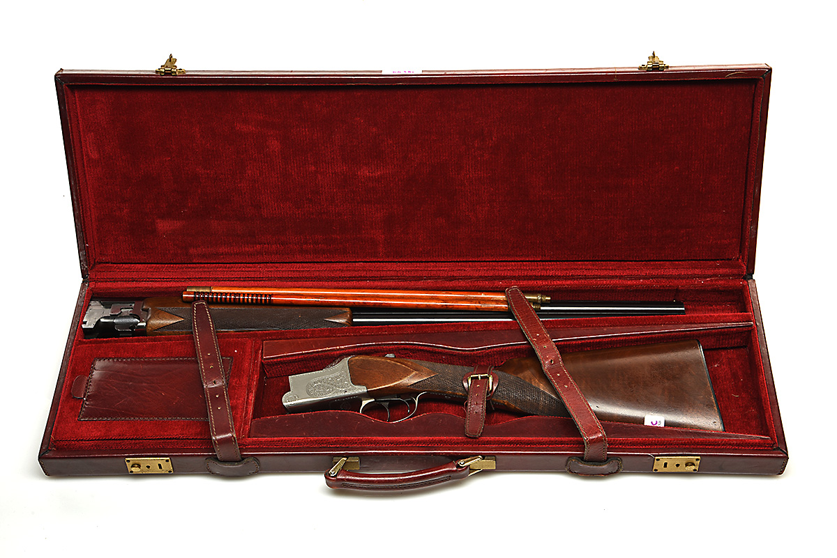 WINCHESTER 12-BORE 'SUPER GRADE' DOUBLE-TRIGGER OVER AND UNDER EJECTOR, serial no. K395540, circa 1991, 28in. nitro reproved barrels with tapered ventilated matt top-rib, 2 3/4in. chambers, bored approx. 1/4 and 3/4 choke, hold-open toplever, manual safety, border and acanthus scroll engraving, bright finish, 14 1/2in. stock including buttplate, weight 6lb. 14oz., in its case