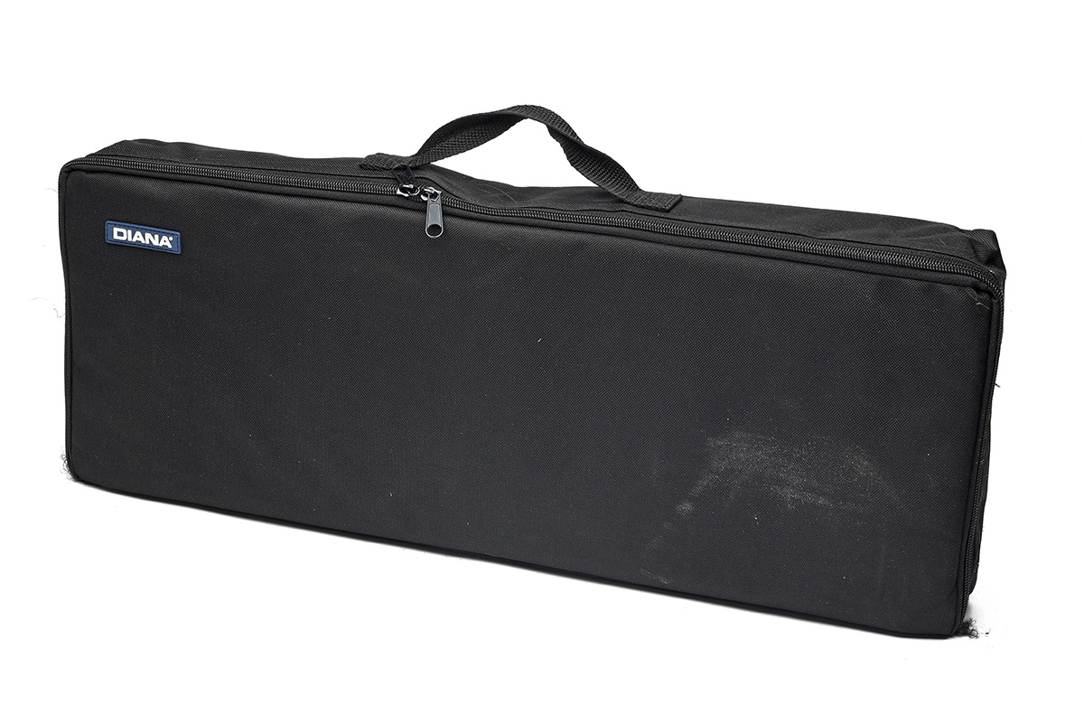 A CASED .22 DIANA CHASER LL208 CO2-POWERED AIR-PISTOL, serial no. 1720219955011248F, with floating 8 1/2in. barrel threaded for a sound moderator (not supplied), bolt action receiver, blacked reservoir and black plastic lower receiver with integral grip, untested but appearing little used, in its maker's zip-up cordura case with polystyrene liner and some accessories including a magazine