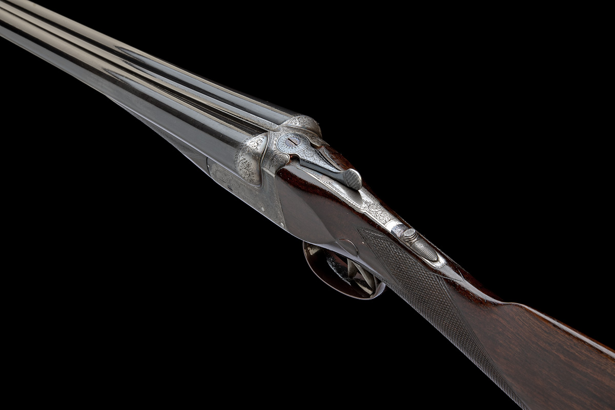 for 1935, 26 3/8in. (67cm) nitro barrels, the rib engraved 'JOHN WILKES. 79. BEAK STT. REGENT ST. LONDON.', 2 1/2in. chambers, bored approx. 1/4 and 1/2 choke, automatic safety with white metal inlaid 'SAFE' detail, fine acanthus scroll engraving with beaded bordering, retaining traces of colour-hardening and some renewed finish, weight 6lb. 4oz.