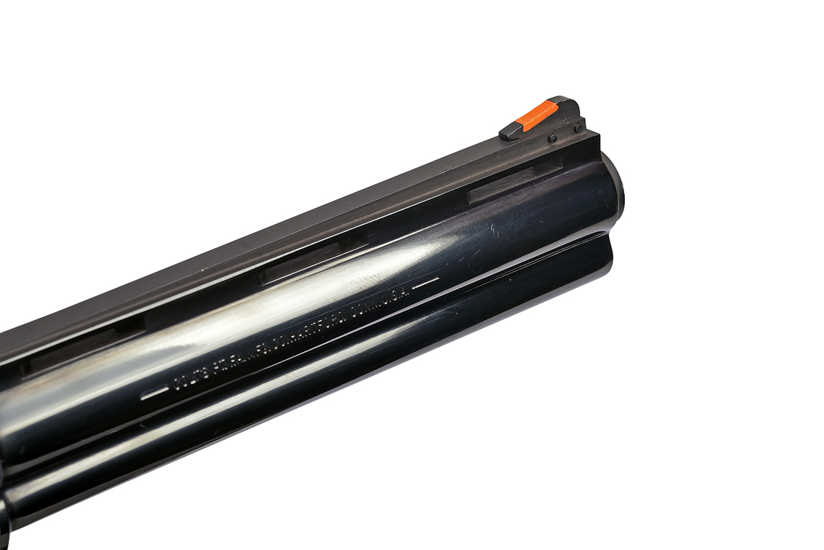 for 1990, with blued 6in. barrel, the right side marked 'COLTS PT. FA. MFG. CO. HARTFORD CONN. USA', the left with model and calibre on two lines, ventilated rib with red-ramp fore-sight, adjustable rear-sight, blued solid frame with swing-out fluted cylinder, double action mechanism with polished sides to the spurred hammer, chequered rubber Pachmayr 'Gripper' grips, appearing little used with much original finish remaining