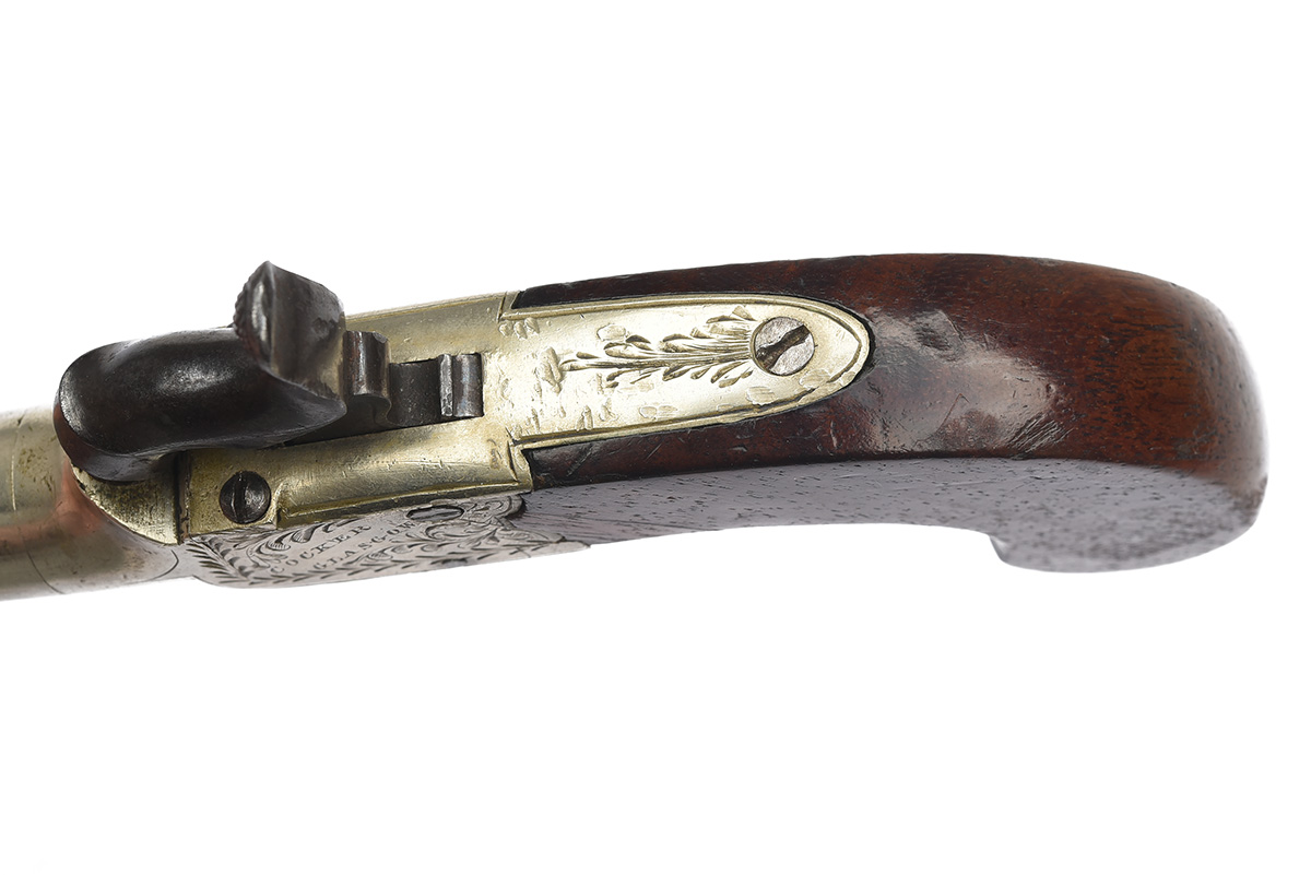 AN INTERESTING 54-BORE PERCUSSION PAKTONG POCKET PISTOL SIGNED COCKER, GLASGOW, no visible serial number,