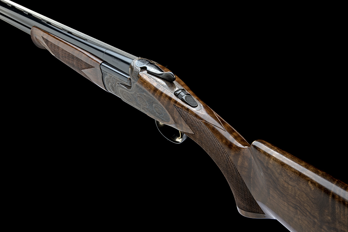 for 2007, 30in. nitro barrels with 7mm ventilated matt top-rib, 3in. chambers, multichokes (with spares), hold-open toplever, manual safety with integral barrel selector switch, gold-washed trigger, action, decorative sideplates and furniture engraved with acanthus scrollwork and floral bouquets, the underside with the model designation, retaining virtually full original colour-hardening and finish, 15in. figured pistolgrip stock with right hand palm swell and including 3/4in. recoil pad, weight 7lb. 11oz., in its universal case with paperwork