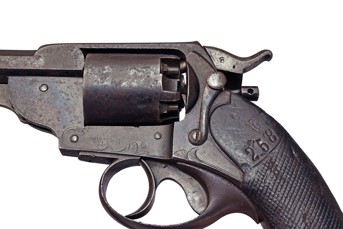 A 54-BORE PERCUSSION KERR-PATENT REVOLVER SIGNED ORBEA HERMANOS, EIBAR, serial no. S-3228, with a vintage holster,