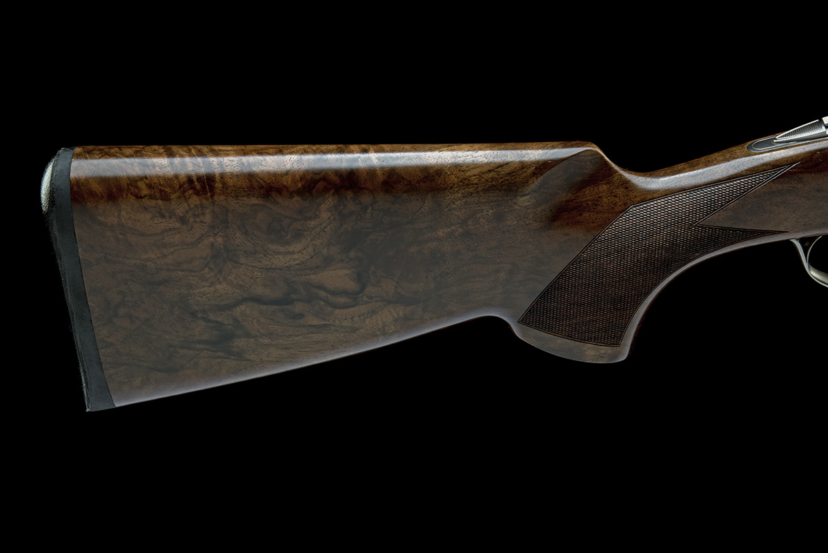 for 2006, 30in. nitro barrels with tapered ventilated matt top-rib and ventilated mid-rib, 3in. chambers, multichokes (with spares), hold-open toplever, manual safety with integral barrel selector switch, adjustable gold-washed trigger, brushed finish with gold detailing, matted fences, the underside with the model designation and numbered 0964 / 1500, 13 5/8in. figured pistolgrip stock including 1/2in. recoil pad, weight 7lb. 4oz., in its universal case with paperwork