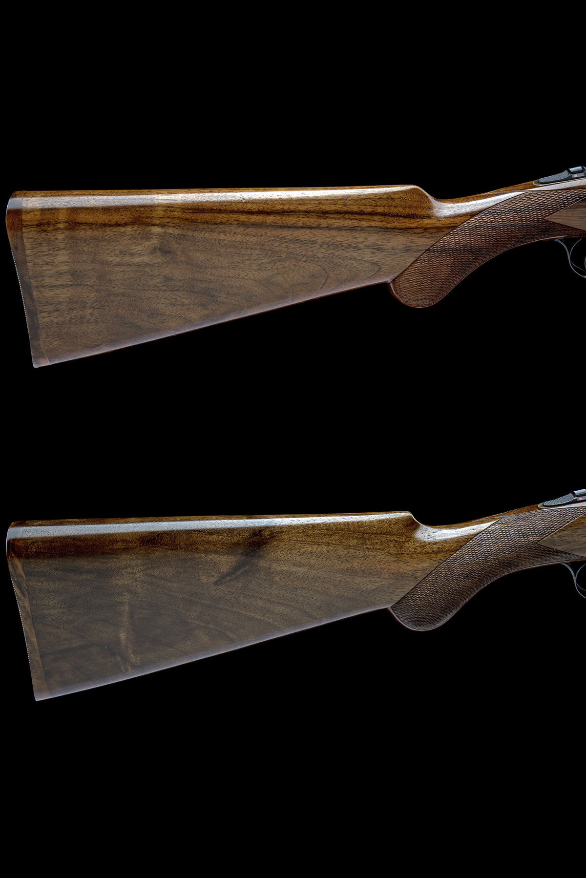 for 2003, 28in. nitro barrels with 6mm ventilated matt top-ribs, 3in. chambers, multichokes (with spares), hold-open toplevers, automatic safeties with integral barrel selector switches, retaining virtually full original colour-hardened finish, triggerplates signed 'Bottega C. Giovanelli', 14 5/8in. figured semi-pistolgrip stocks including wooden buttplates, weight 6lb. 4oz., in a universal case