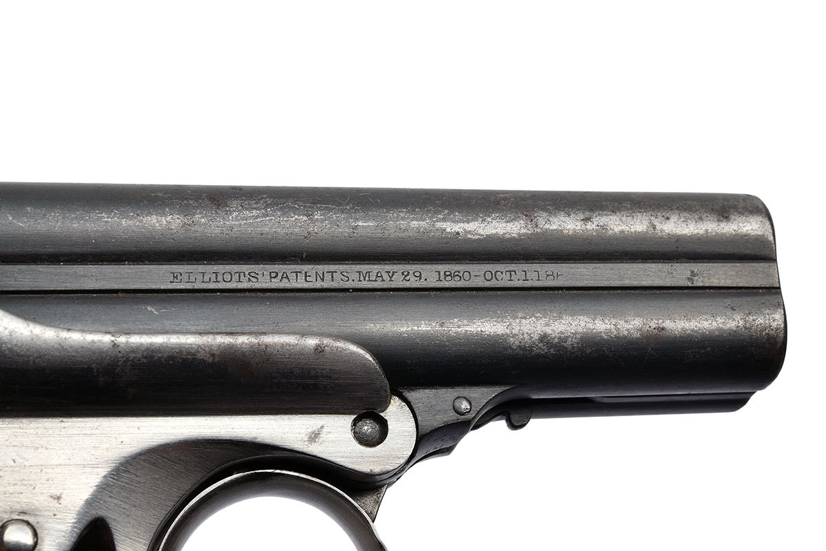 A .32 (RIMFIRE) REMINGTON ELLIOT'S PATENT FOUR-BARRELLED DERRINGER PISTOL, serial no. 15541, in a later case,
