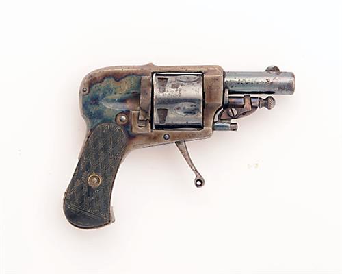 A 6.35mm FIVE-SHOT POCKET REVOLVER, UNSIGNED, MODEL HAMMERLESS, serial no. 4085, Belgian, circa 1900, with 1 1/2in. blued nitro barrel, blued cylinder, case-hardened frame, folding trigger, skip-chequered grips, and much original finish.