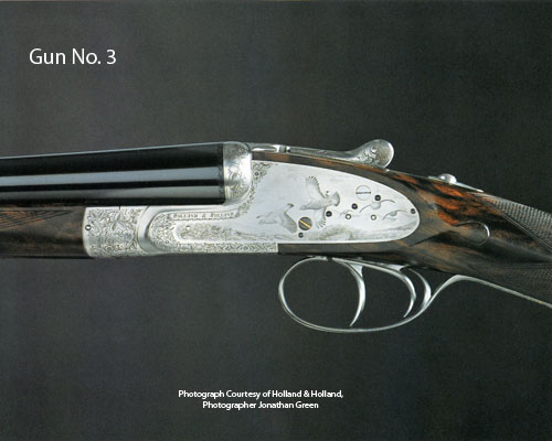 the set comprising a pair of 20-bores, a single 16-bore and a pair of 12-bores, all with 28in. nitro chopperlump barrels, ribs scroll-engraved at the breech ends and gold-inlaid '1' to '5' and 'THE BRITISH GAME BIRDS SET OF FIVE 1993', the tubes engraved 'HOLLAND & HOLLAND. 33. BRUTON STREET. LONDON.', 2 3/4in. chambers, bored approx. 1/4 and 3/4 choke in all, rounded bar actions, automatic safeties with gold-inlaid 'SAFE' details, hand-detachable lockplates (the hand-detachable release catches supplied but not fitted), gold-inlaid cocking-indicators, rolled-edge triggerguards, the triggerguards gold-inlaid '1' to '5', the fences finely engraved with strawberry fruit and flowers, the actions and furniture finely engraved with scrolling floral and acanthus motifs, the toplevers with fine representations of woodcock, snipe, grouse, partridge and pheasant respectively, each gun themed with a single bird, No.1 with woodcock, No.2 with snipe, No.3 with grouse, No.4 with English partridge and No.5 with pheasant, their lockplates and undersides exquisitely engraved with the chosen species in flight and on the ground - nesting, foraging or at a lek, the locks signed 'P. COGGAN', bright finish overall, with 15 1/4in. exhibition grade walnut stocks, including leather covered recoil pads, weight 6lb. 1oz. (20-bores), 6lb. 9oz. (16-bore) and 7lb. 2oz. (12-bores), all cased in their fitted brass-cornered oak and leather double and single cases to suit.