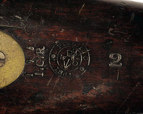 Other Notes: Only 100 of these rifles were produced at Enfield during 1840 for use in the fighting tops of ships of the Royal Navy. Expert opinion puts the number of known surviving examples at between 5-10 guns. Some remained in use mostly on Far Eastern stations as late as the 1870's. It is believed that this is the only example known with an Enfield Re-Work stamp and was probably from the Singapore Station.