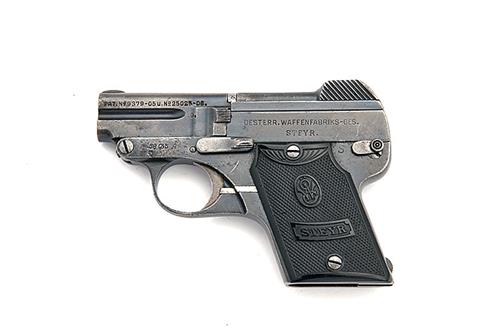 * A 6.35mm (.25 ACP) SEMI-AUTOMATIC POCKET-PISTOL SIGNED STEYR, MODEL 'PIEPER'S PATENT', serial no. 58035A, circa 1909, with tip-down 2in. barrel, sighted slide, blued frame and chequered hard-rubber grips, missing magazine, much original finish