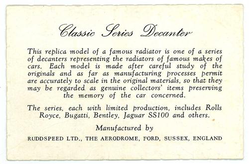 A LIMITED EDITION 'CLASSIC SERIES DECANTER' IN THE FORM OF A ROLLS ROYCE RADIATOR,
