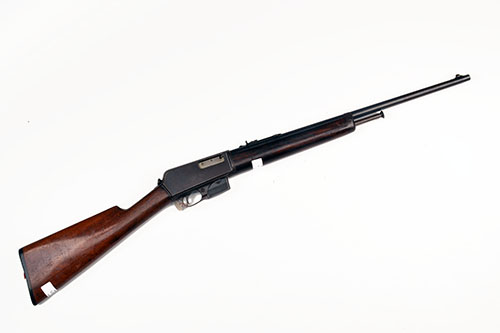 EX SMALL ARMS SCHOOL CORPS WEAPONS COLLECTION, A .32 (WSL) SEMI-AUTOMATIC SPORTING RIFLE SIGNED WINCHESTER, serial no. 22539, ref. no. 1874 being the model of 1907 and dating to 1910, with 22in. sighted barrel, plain receiver and walnut stock and fore-end, complete with magazine, retaining its collection identity disk