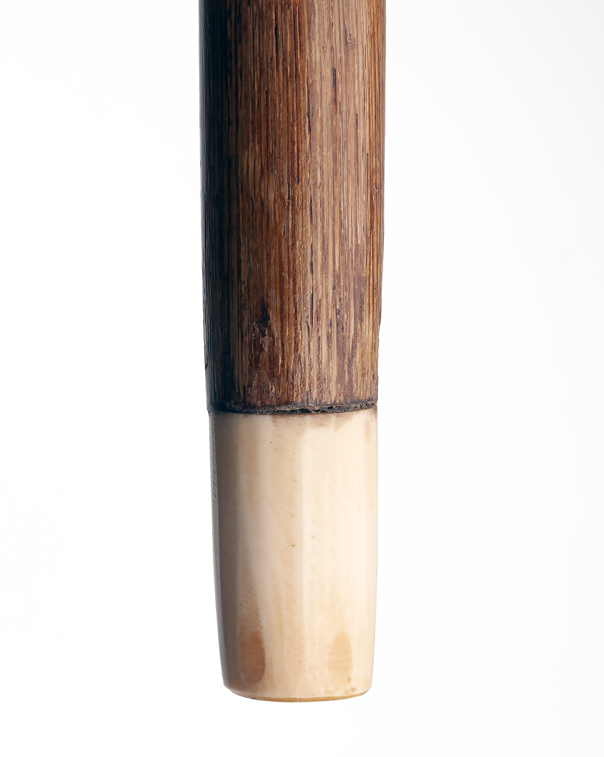 Birmingham hallmarks (rubbed, possibly 1900), with plain cane shaft tipped with an ivory ferrule, the pommel carved with a realistic depiction of a hound's head, applied glass eyes and sporting a realistically carved and moulded silver collar with a further hallmarked silver band at the join
