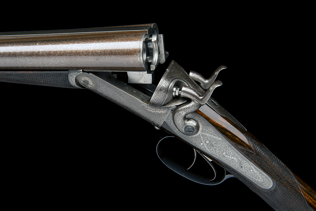 BOSS & CO. AN EXCEPTIONALLY RARE 1887 PATENT 12-BORE SIDELEVER HAMMER EJECTOR PIGEON GUN, serial no. 4009,