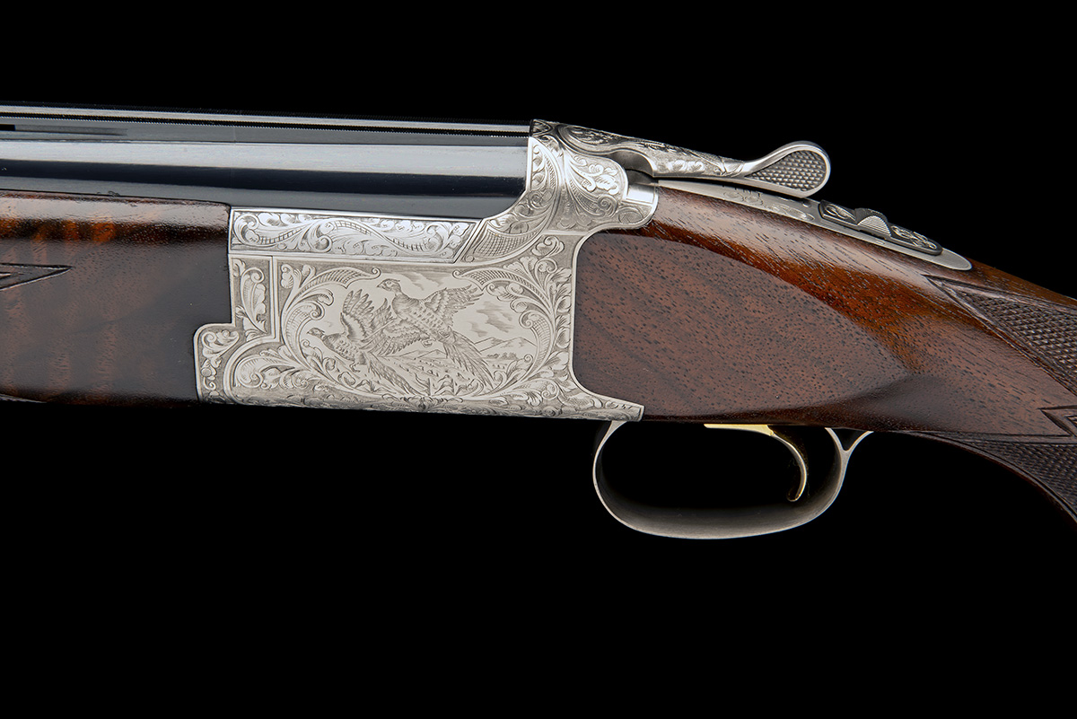32in. nitro reproved barrels with 10mm ventilated matt top-rib, intermediate bead sight, 2 3/4in. chambers, multichokes (no spares), hold-open toplever, manual safety with integral barrel selector switch, adjustable gold-washed trigger, game and scroll engraving, bright finish, 14 3/4in. figured pistolgrip stock including 5/8in. rubber recoil pad, weight 8lb. 1oz., in a Browning universal case