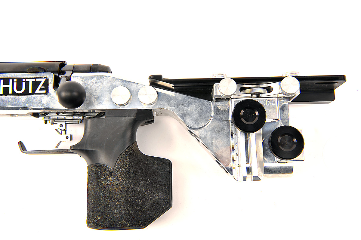 A LEFT-HANDED J.G ANSCHUTZ .22 L.R. 'SUPER MATCH MODEL 1913' BOLT-ACTION TARGET RIFLE, serial no. 313 0248, 27in. nitro barrel, fitted on a HPS 'convertible' fullbore & smallbore target stock, together with a Blade ABS case