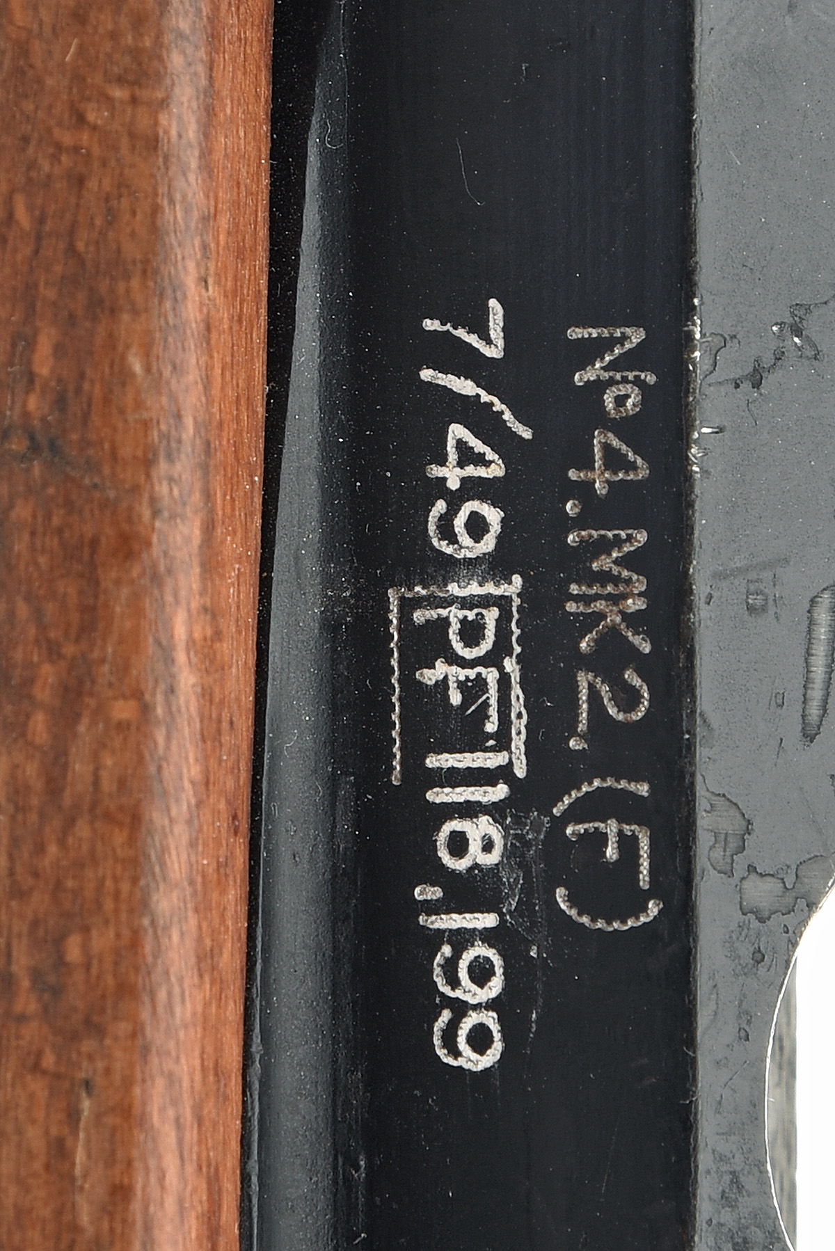 ** LEE ENFIELD .303 'No. 4 MK2(F)' BOLT-MAGAZINE SERVICE RIFLE, serial no. PF118199, circa 1940, 25 1/8in. nitro barrel, ramp-mounted fore-sight with protectors, folding battle sight, manual safety, detachable box magazine, full-length stock, sling swivels, brass buttplate with trap door