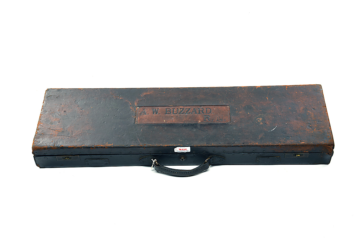ARMY & NAVY C.S.L. 12-BORE BOXLOCK EJECTOR, serial no. 68113 / 96280, for 1922, 28in. nitro barrels, the rib engraved 'ARMY & NAVY C.s.l.. LONDON.', 2 1/2in. chambers, bored approx. imp. cyl. and 3/4 choke, treble-grip action with removable striker discs, (96280 a Webley action number), automatic safety, border and acanthus scroll engraving, retaining traces of colour-hardening, 17in. stock including 2 5/8in. wooden extension (ill fitting), weight 6lb. 12oz., in a leather bound oak case