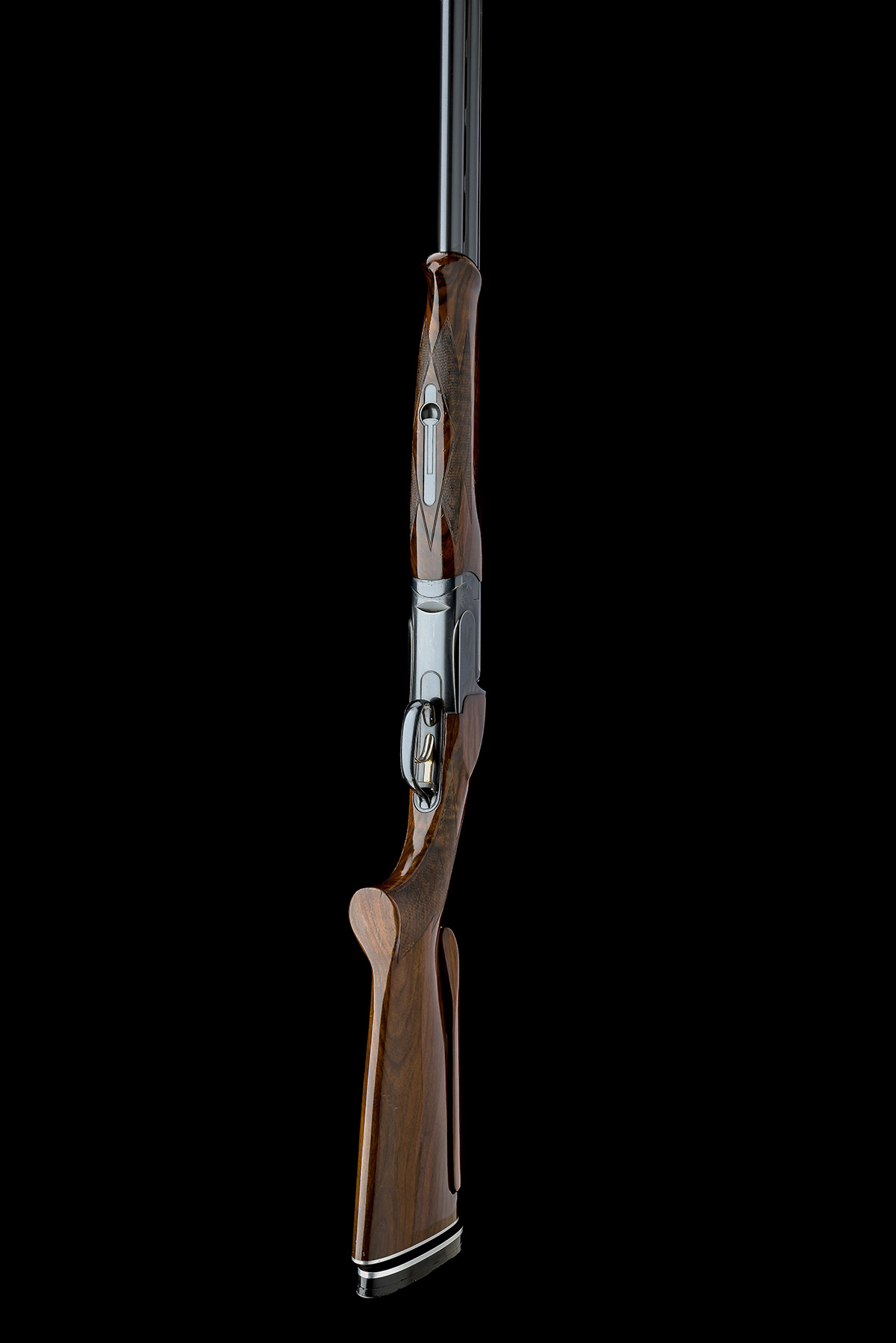 for 2000, 31 1/2in. (80cm) ported high performance steel shot proof nitro barrels with tapered raised matt top-rib and ventilated mid-rib, 2 3/4in. chambers, multichokes (with spares), hold-open toplever, manual safety with integral triggerplate release catch, triggerplate mounted barrel selector switch, plain blacked action, 14 5/8in. pistolgrip stock with adjustable comb and adjustable Kick-Eez recoil pad, weight 9lb., in its universal case