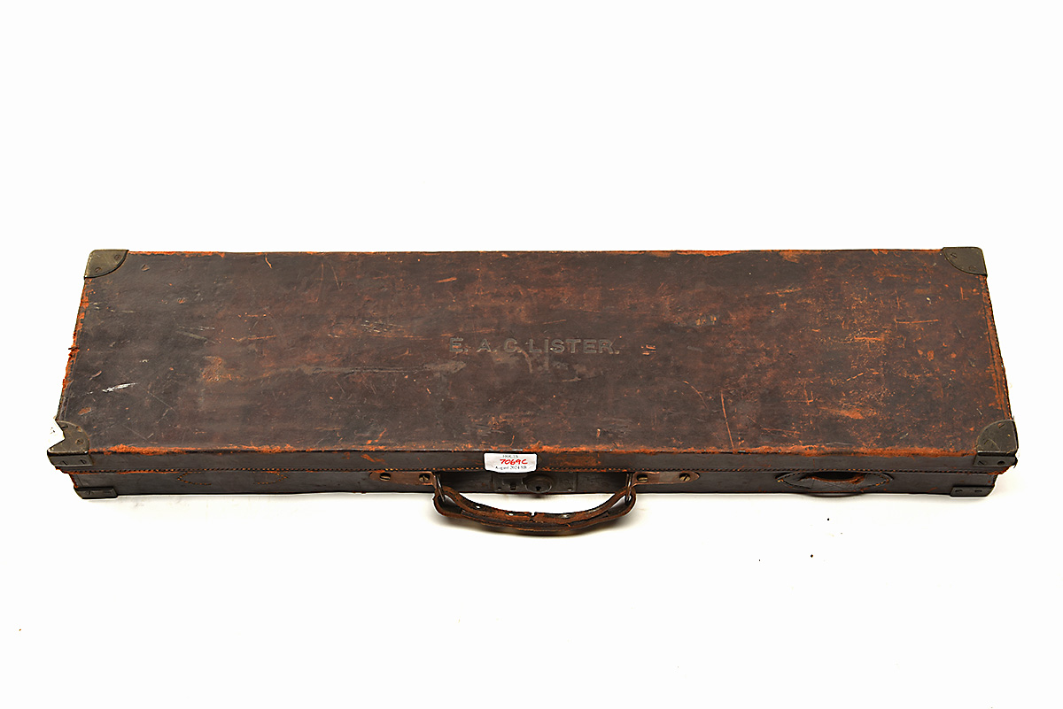 HOLLIS BENTLEY & PLAYFAIR 12-BORE BOXLOCK EJECTOR, serial no. 88037, circa 1925, 'serial number' on under rib only, 29 7/8in. nitro reproved barrels (skimmed at muzzle), rib engraved 'HOLLIS BENTLEY & PLAYFAIR. BIRMINGHAM & LONDON.', 2 1/2in. chambers, bored approx. imp. cyl. and 1/4 choke, treble-grip action, automatic safety with brass 'SAFE' plaque, border engraving, retaining some original colour-hardening and finish, 14 3/4in. stock, weight 6lb. 11oz., in a brass-cornered leather case with a 'Harrods Ltd. Sporting Outfitters' trade label