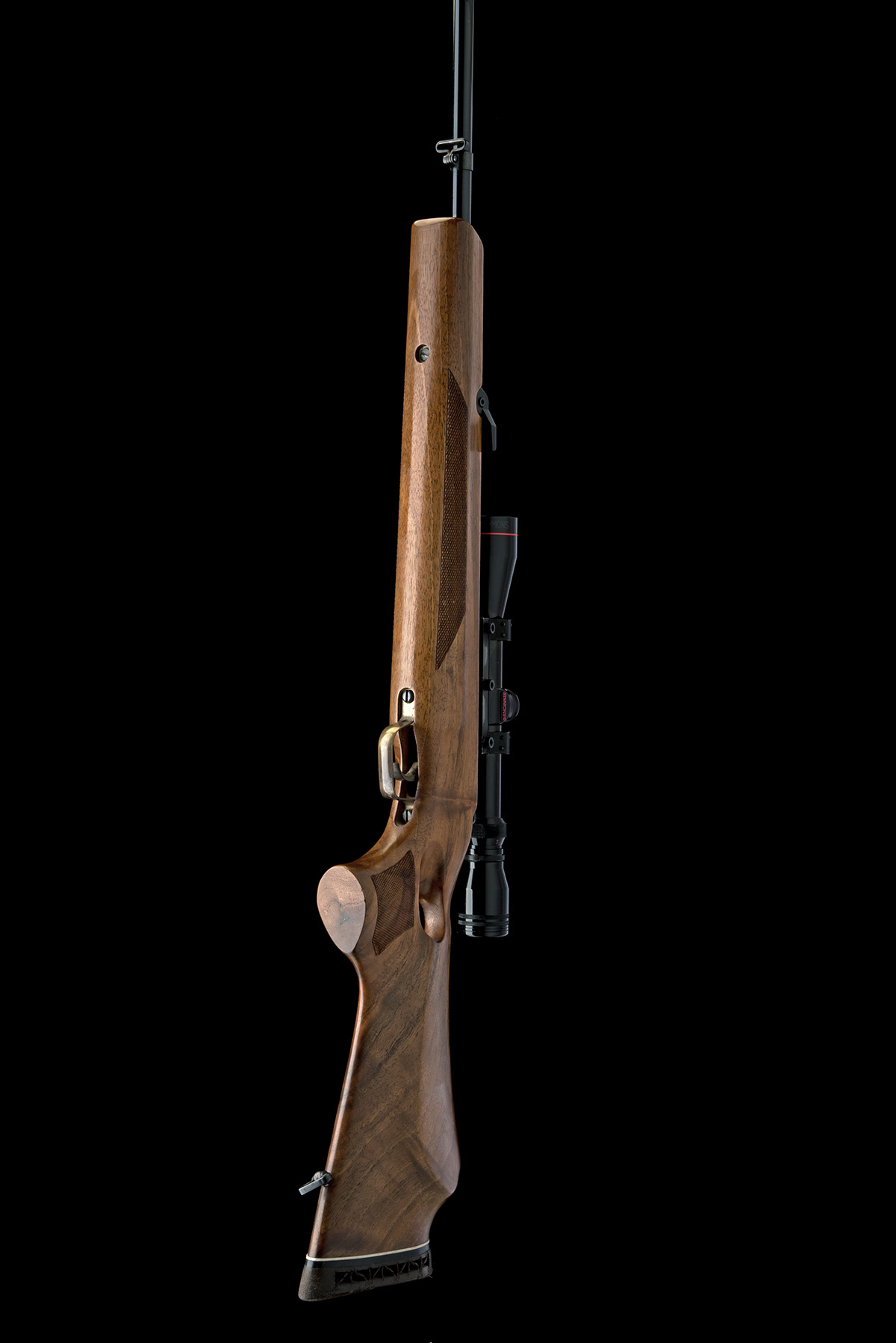 circa 1990, with blued 18in. barrel including custom brass sound moderator, tap-action breech, blued air-chamber and deluxe chequered walnut three-quarter thumbhole stock with ventilated rubber recoil pad (some deformity), brass trigger and guard (some tarnish), generally collector's external condition and fitted with a 'Simmons' 3-9x40 telescopic sight and broad nylon sling