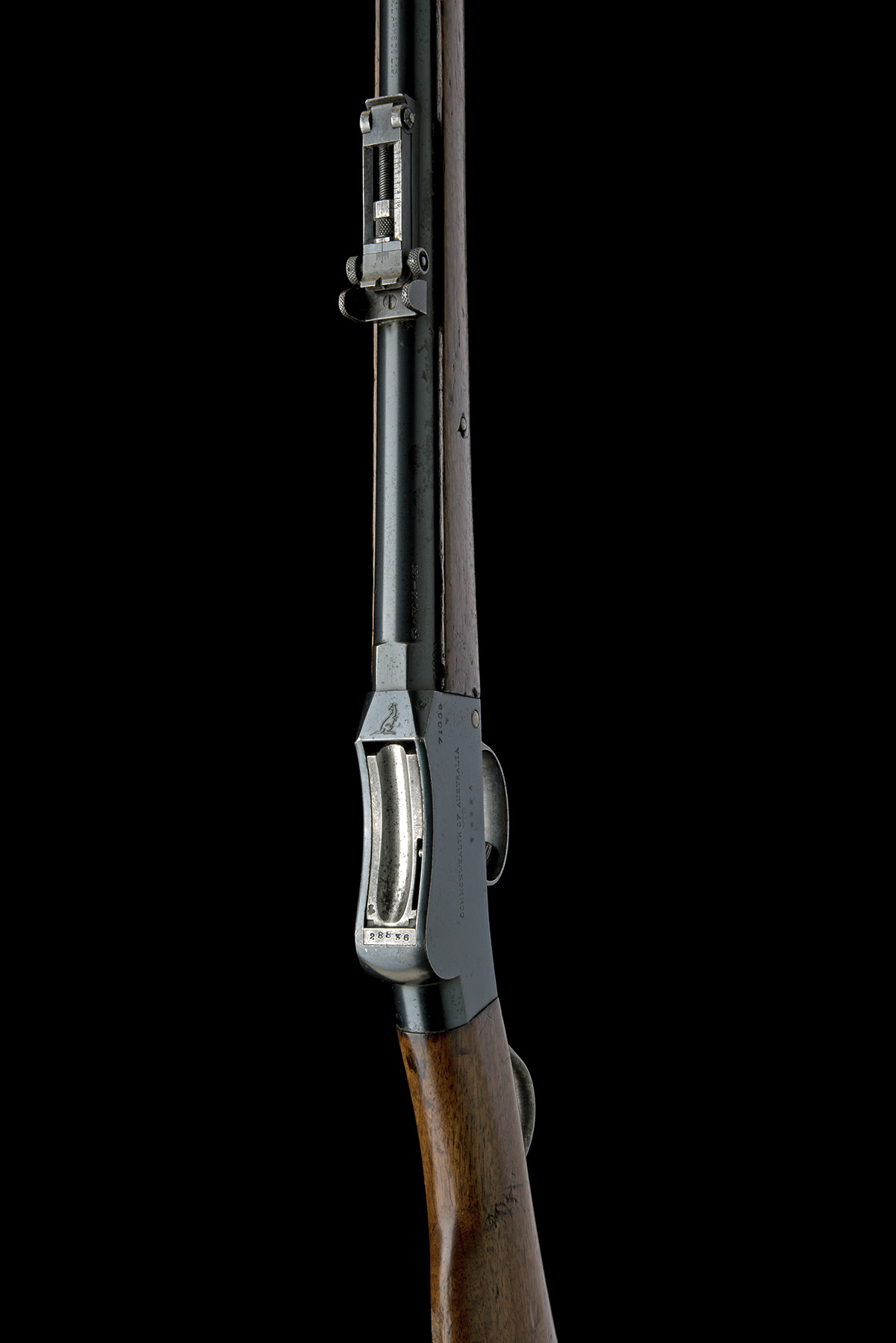circa 1911, with blued round 25 1/4in. barrel, block and blade fore-sight retaining its spring-steel sliding protector, elevating micro-adjustable rear-sight, blued slab-sided receiver marked on the right 'COMMONWEALTH OF AUSTRALIA' over 'VIC' for 'Victoria', the left with BSA's name and trademark, walnut butt-stock and fore-end (some heavy bruising to butt), iron furniture and sling-swivels, much finish remaining
