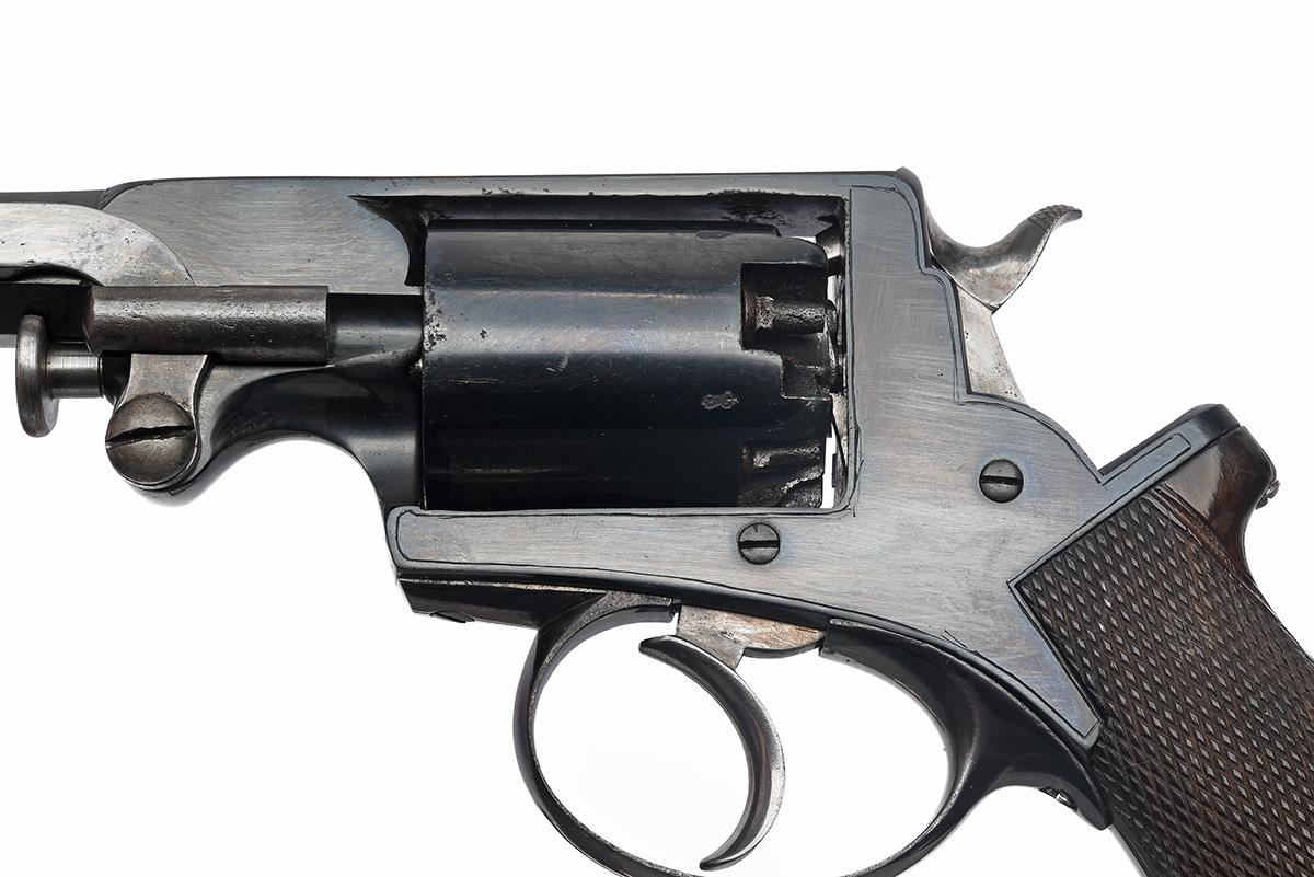 A CASED 54-BORE PERCUSSION ADAM'S PATENT REVOLVER, UNSIGNED, no visible serial number,