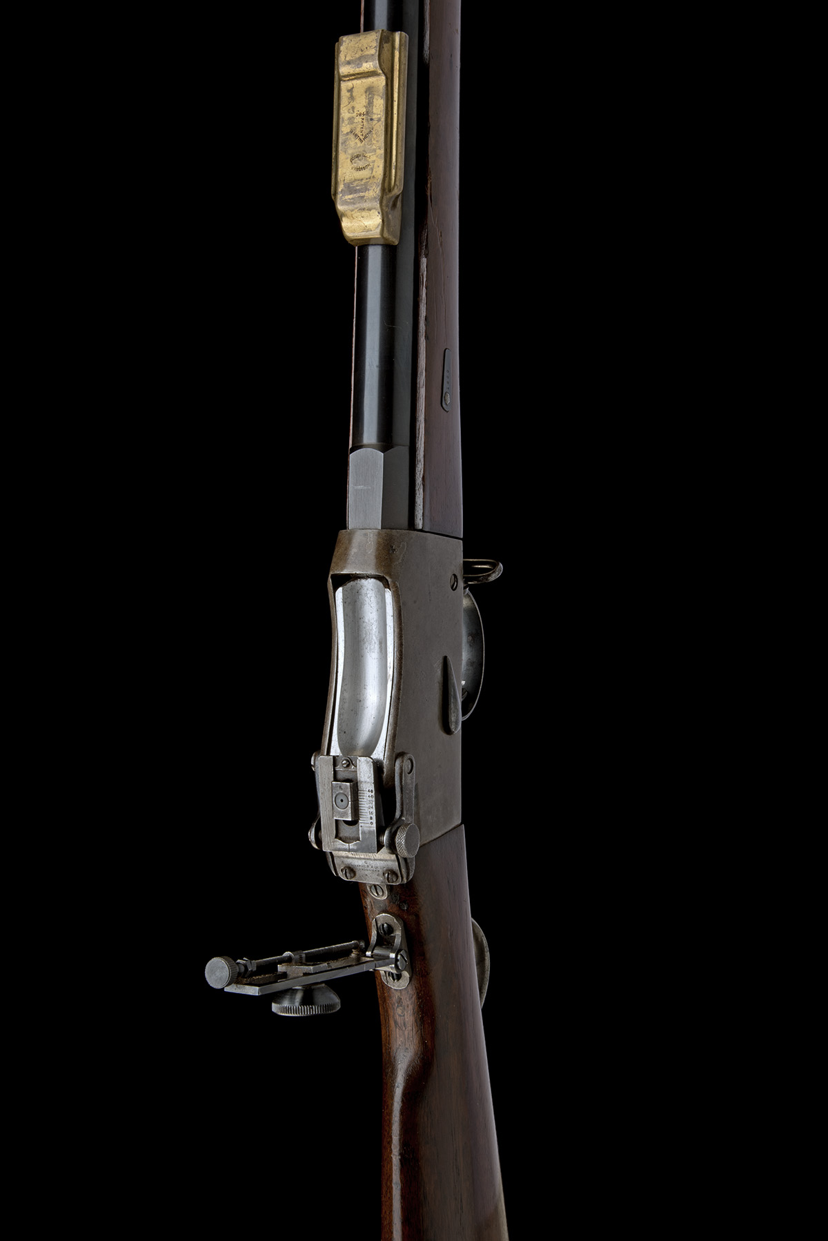 a marriage of late 19th Century parts (some with faint Ordnance inspection marks) and early 20th Century target accessories, with 33in. barrel, tilting block action, walnut stock, two barrel-bands, the front with a bayonet bar, three sling swivels, with Parker & Co. target peep sight, Cogswell & Harrison rear sight cover and a Parker's foresight shade