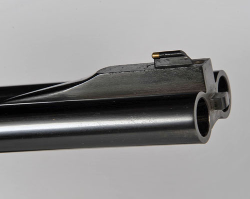 catalogue number 4625, 25 3/8in. nitro chopperlump barrels with matt sight rib, gold-highlighted open sights marked '50' and '75' and ramp-mounted gold bead foresight, bolstered treble-grip action with removable striker discs, elongated top-strap, manual safety with gold-inlaid 'SAFE' detail, articulated front trigger, rolled-edge triggerguard, bold acanthus scroll engraving, the underside gold-inlaid with the makers name and model designation, triggerplate signed 'D. Bonsi', retaining virtually full original colour-hardening and finish, 14 5/8in. highly-figured pistolgrip stock with cheekpiece, engraved steel pistolgrip-cap (with trap), including 1/2in. rubber recoil pad, fore-end with grip-catch release lever, weight 10lb. 11oz., in its lightweight leather case with paperwork and some accessories