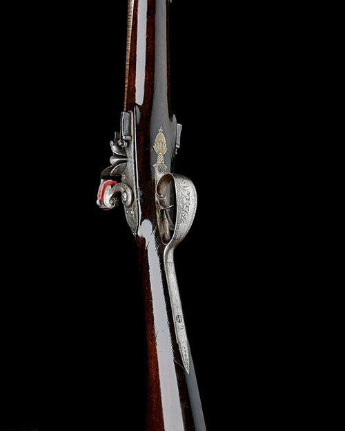 A CASED 14-BORE FLINTLOCK DOUBLE-BARRELLED SPORTING-GUN, serial no. 4799,