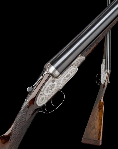 27 1/2in. sleeved nitro barrels, retaining original matt rib engraved 'L. BRANCQUAERT A BRUXELLES' and '1' at the breech end, 2 1/2in. chambers, bored approx. imp. cyl. and 3/4 choke, Beesley style self-opening action, removable striker discs, automatic safety with gold-inlaid 'SAFE' detail, fine floral and acanthus scroll engraving, brushed bright finish, 15 1/4in. figured stock including 1 1/4in. leather covered recoil pad, weight 6lb. 14oz.