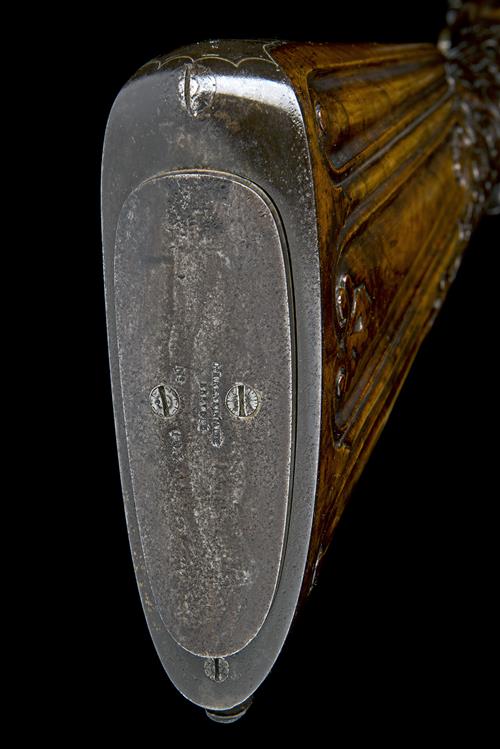 Other Notes: This rare shotgun combines a grip safety which must be depressed before mounting with a sprung heel-plate safe meaning the gun can only be fire when shouldered. The late Geoffrey Boothroyd wrote an in depth article on this actual gun for the December issue of Guns Review magazine in 1996