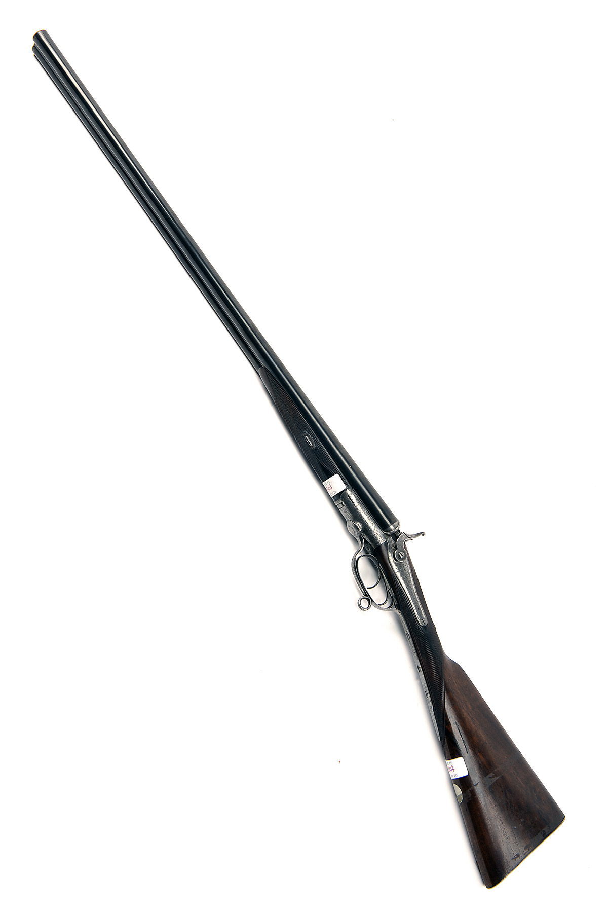 H. HOLLAND 12-BORE ROTARY-UNDERLEVER HAMMERGUN, serial no. 1308, 29 3/4in. nitro reproved barrels, the rib engraved 'H. HOLLAND. 98 NEW BOND STREET. LONDON.', and with acanthus scroll detailing at the breech-end, 2 1/2in. chambers, bored approx. true cyl. choke in both, wall thicknesses at 19, Jones patent rotary-underlever, carved serpentine fences, non-rebounding back-action sidelocks with spurred hammers of hares's ear form, profusely engraved with acanthus scrollwork and vignettes of hound on point, brushed bright finish, 14in. replacement stock including steel buttplate, weight 6lb. 11oz.