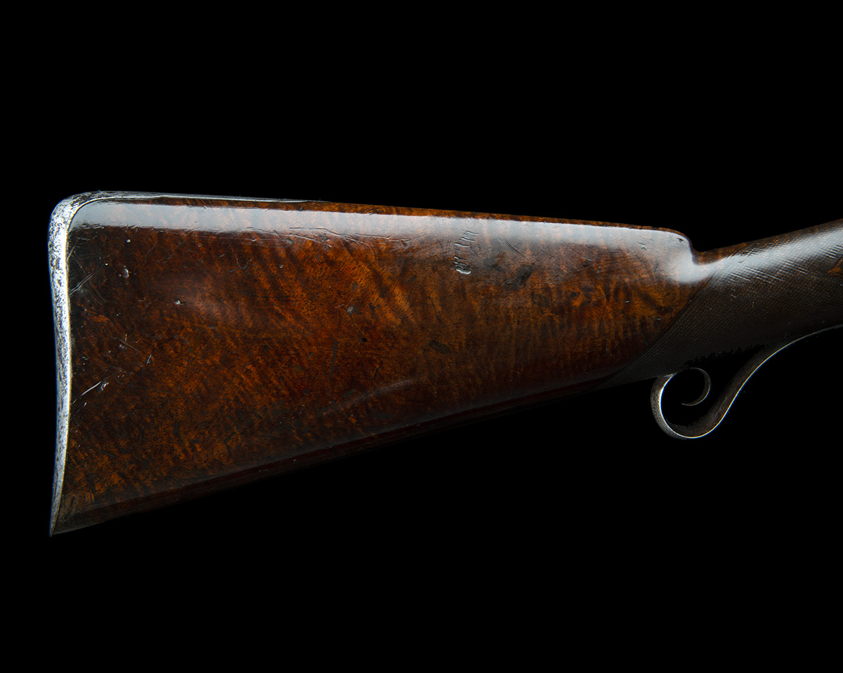 A CASED 16-BORE PERCUSSION DOUBLE-BARRELLED SPORTING-GUN, no visible serial number,