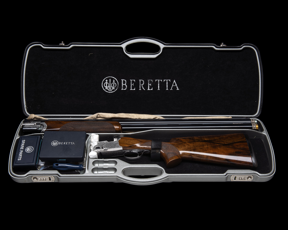 30in. 'Steelium pro' nitro barrels with ventilated mid-rib and 9mm ventilated matt top-rib, 3in. chambers, multichokes (with spares), hold-open toplever, manual safety with integral barrel selector switch, floral acanthus scroll engraving set against a matt background, 14 1/2in. pistolgrip stock including 5/8in. rubber recoil pad, weight 8lb. 2oz., in its makers universal case