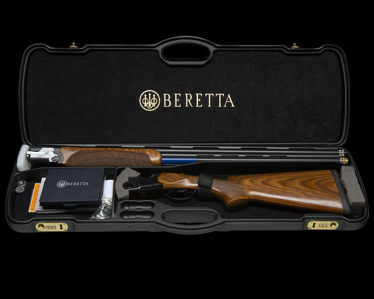 30in. nitro barrels with ventilated mid-rib and 10mm carbon fibre ventilated matt top-rib, 3in. chambers, multichokes (with spares), hold-open toplever, manual safety with integral barrel selector switch, adjustable single trigger, blacked finish with stippled fence, gold-inlaid with the makers name and model designation, 14 1/2in. pistolgrip stock including 5/8in. rubber recoil pad, weight 7lb. 15oz., in its makers universal case