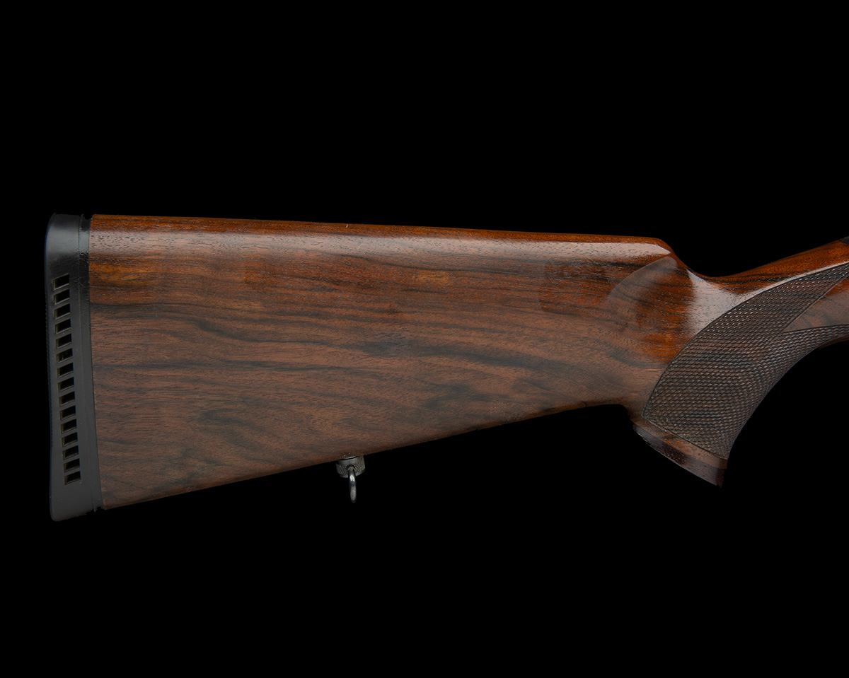 23 3/4in. nitro barrel with ramp-mounted open sights and ramp-mounted blade fore-sight, the receiver with quickly-detachable telescopic sight mount bases, gold-washed set trigger, triggerplate mounted safety, removable box magazine, well-figured pistolgrip stock with palm swell, cheekpiece, quickly-detachable sling swivels, 14 5/8in. pull including 3/4in. ventilated rubber recoil pad, weight 8lb. 1oz.