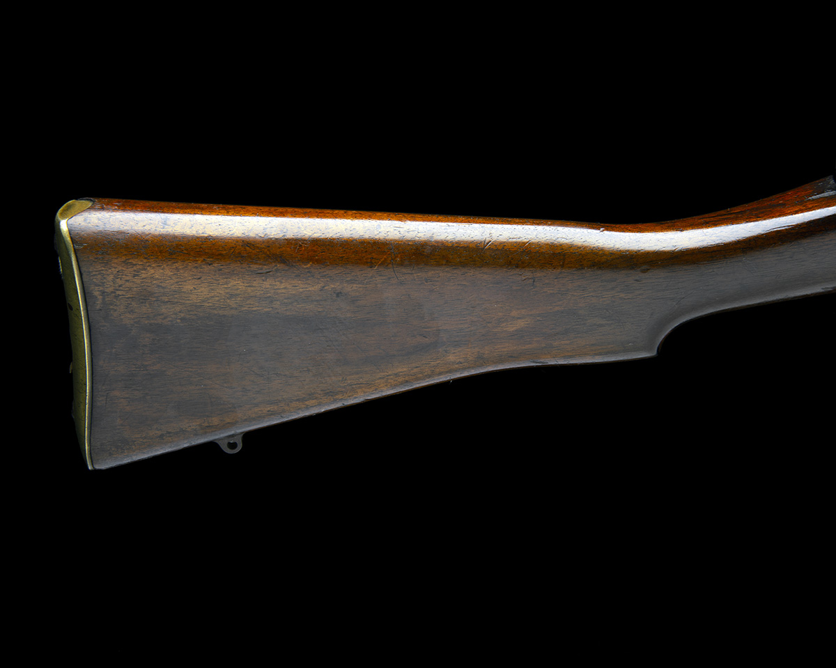 30in. nitro barrel, protected ramp-mounted fore-sight, folding rear-sight, fitted with B.S.A. folding aperture sights, loading bridge, magazine cut-off, volley-sights, no safety, magazine cut-off, detachable box magazine, 13in. stock with brass buttplate