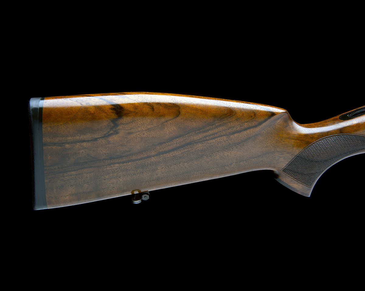 26in. nitro barrel with colour-hardened block-mounted open sights and colour-hardened ramp-mounted bead fore-sight, colour-hardened receiver mounted with telescopic sight rail mount bases with rings, three position roller safety, set trigger, detachable box magazine with colour-hardened base, figured pistolgrip stock with sculpted cheekpiece and hogsback comb, sling swivels, 15in. pull including 1/2in. rubber recoil pad, weight 8lb. 15oz.